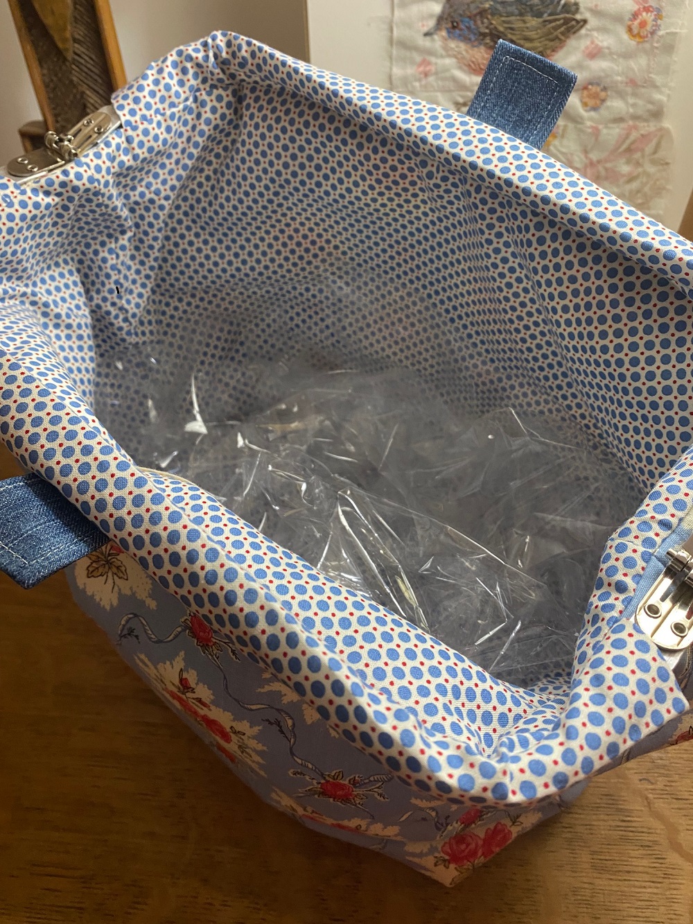 Tissu vintage à médaillons pour l’extérieur, doublure et armature en tissus patchwork vintage pois.