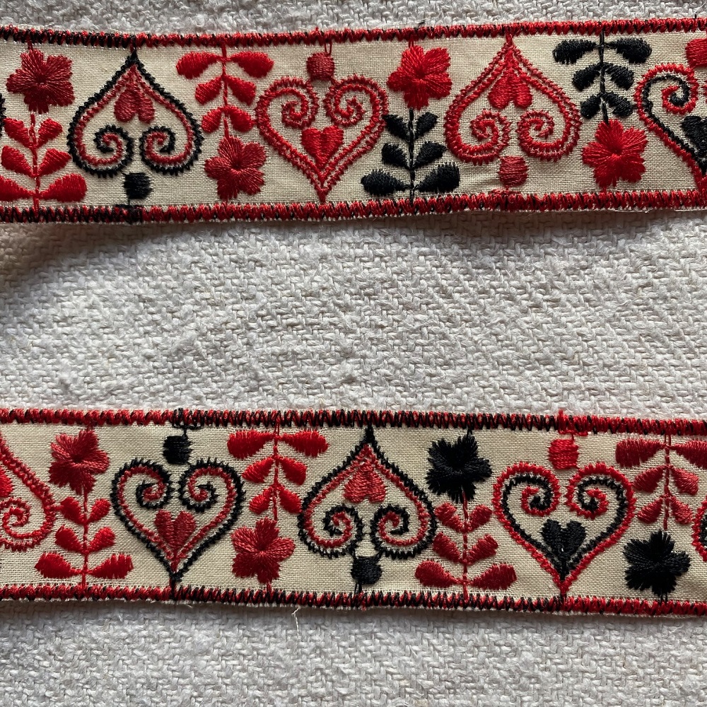 Les modèles proviennent d'un top chiné aux USA, datant de 1900 environ, rassemblant de nombreuses broderies rouges aux motifs variés.