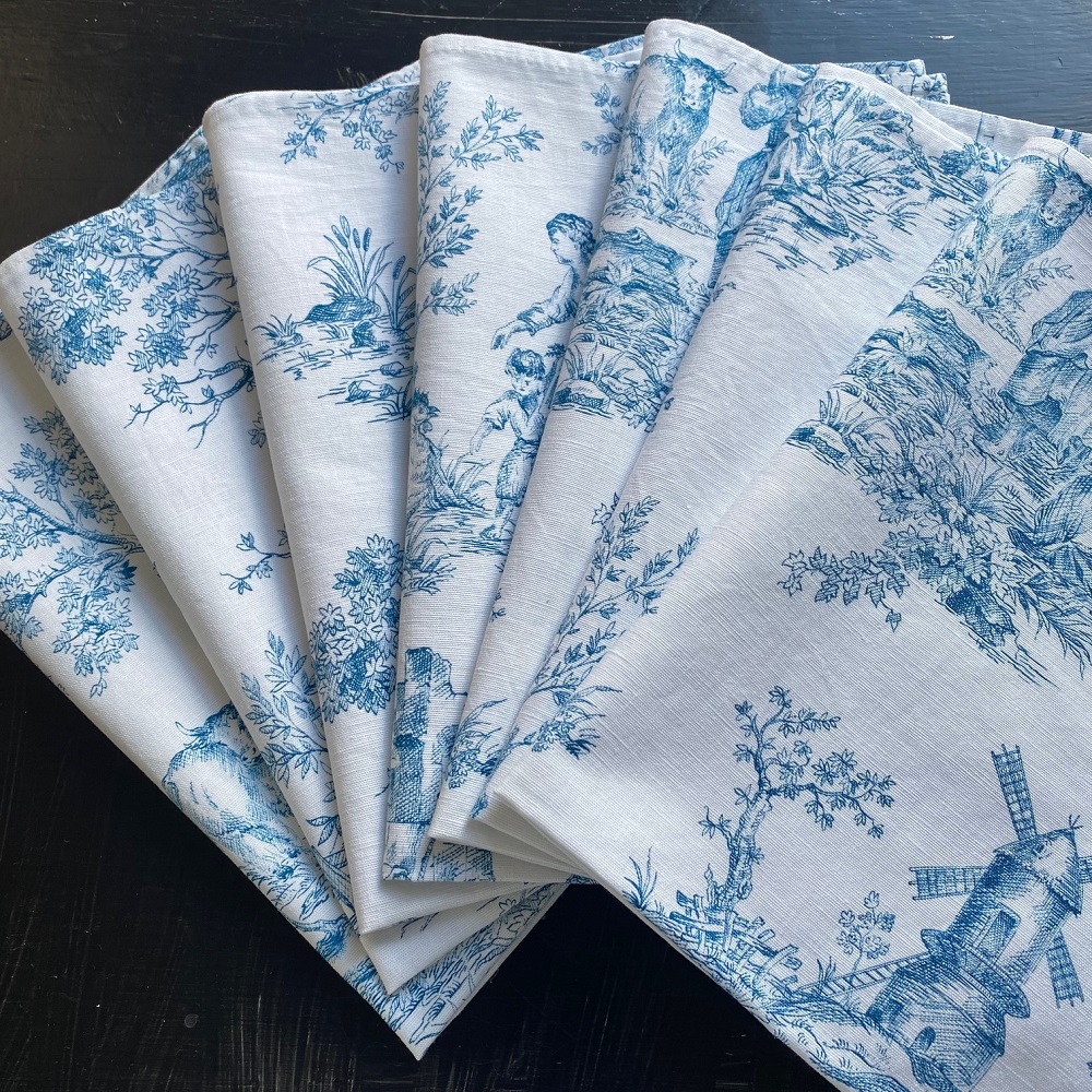 Les coupons sont légèrement différents, car coupés et ourlés à la façon de serviettes dans le tissu d’origine.