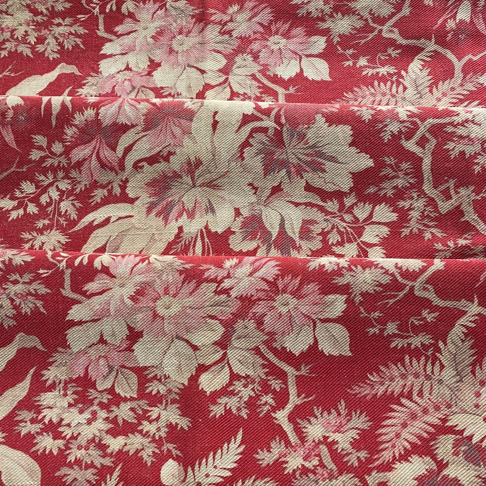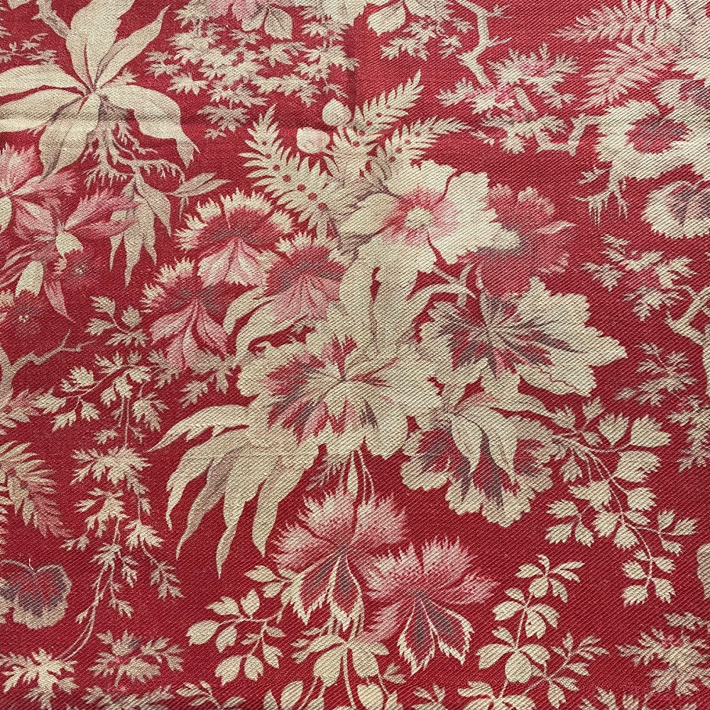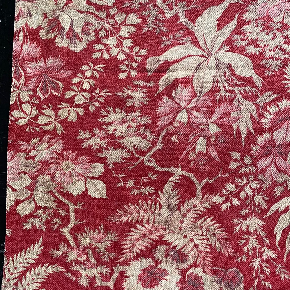 Coton texturé d’époque Napoléon III, superbes couleurs et motifs floraux.