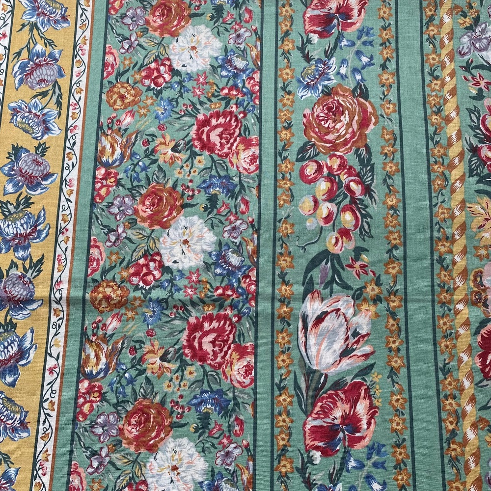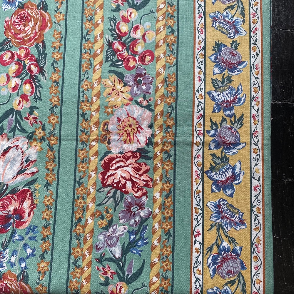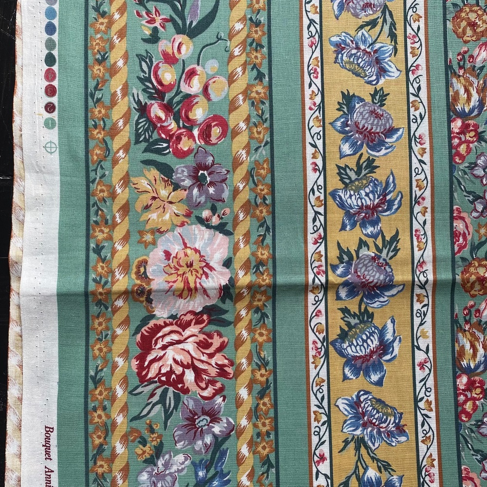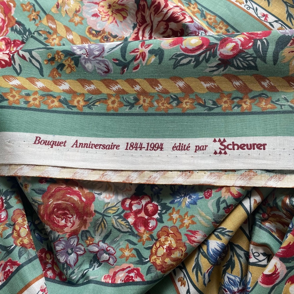 Coton éditeur Scheurer 1994, diverses bandes fleuries sur fond vert ou jaune.