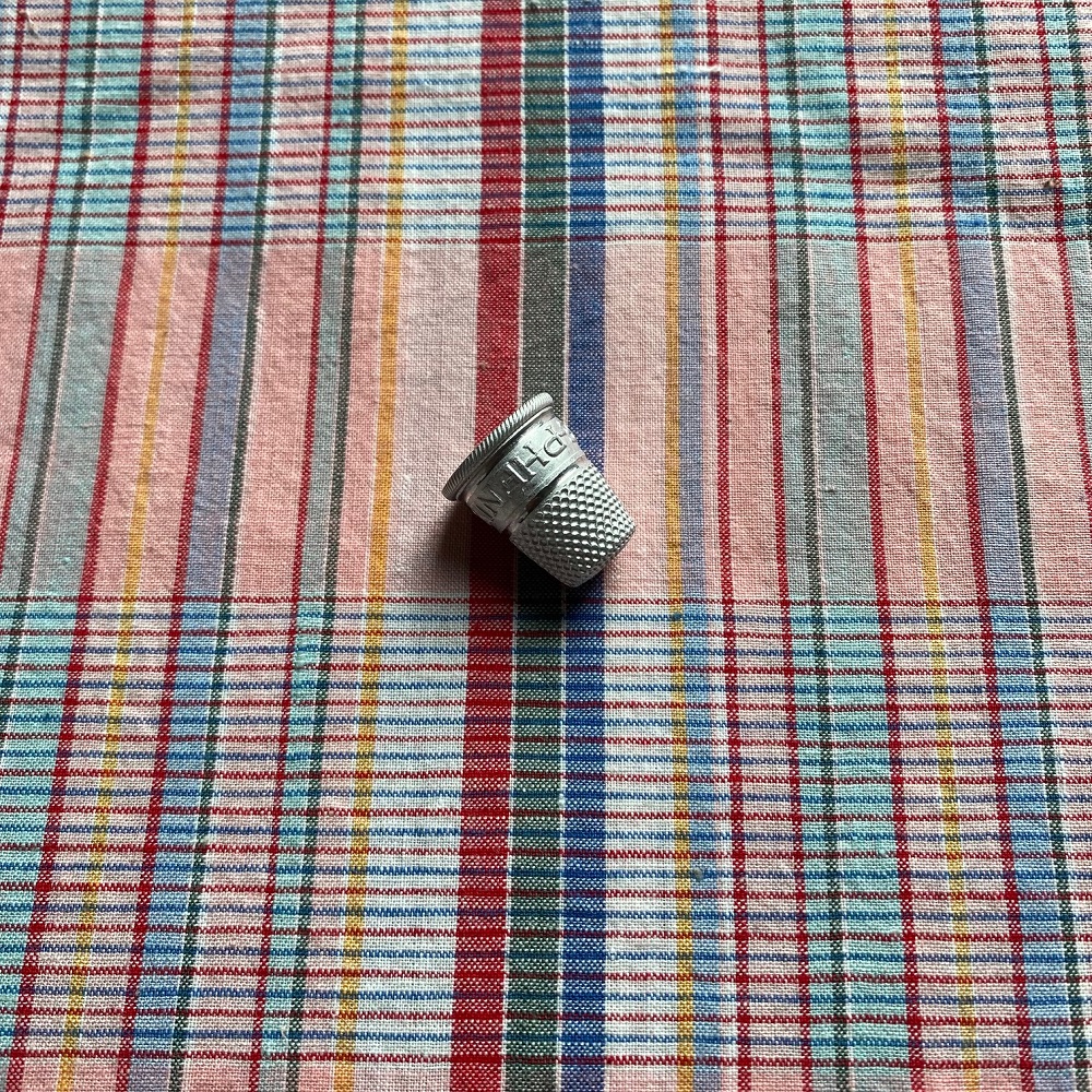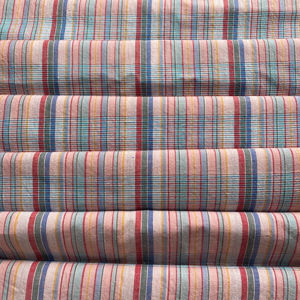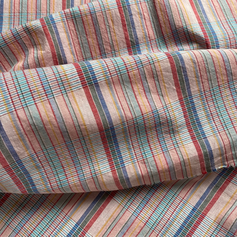 Coton ancien, années 50/60, fond rose à carreaux multicolores.